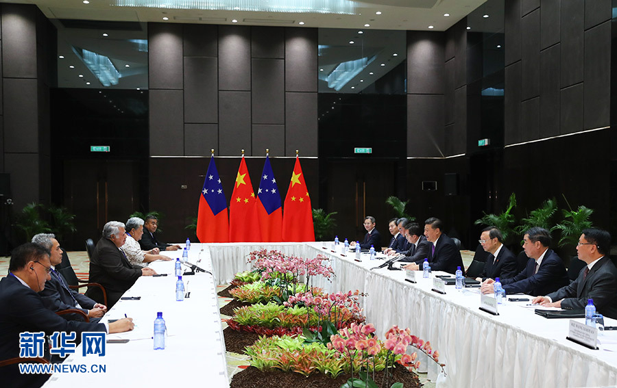 11月16日,國(guó)家主席習(xí)近平在莫爾茲比港分別會(huì)見(jiàn)建交太平洋島國(guó)領(lǐng)導(dǎo)人。這是習(xí)近平會(huì)見(jiàn)薩摩亞總理圖伊拉埃帕。 新華社記者 謝環(huán)馳 攝