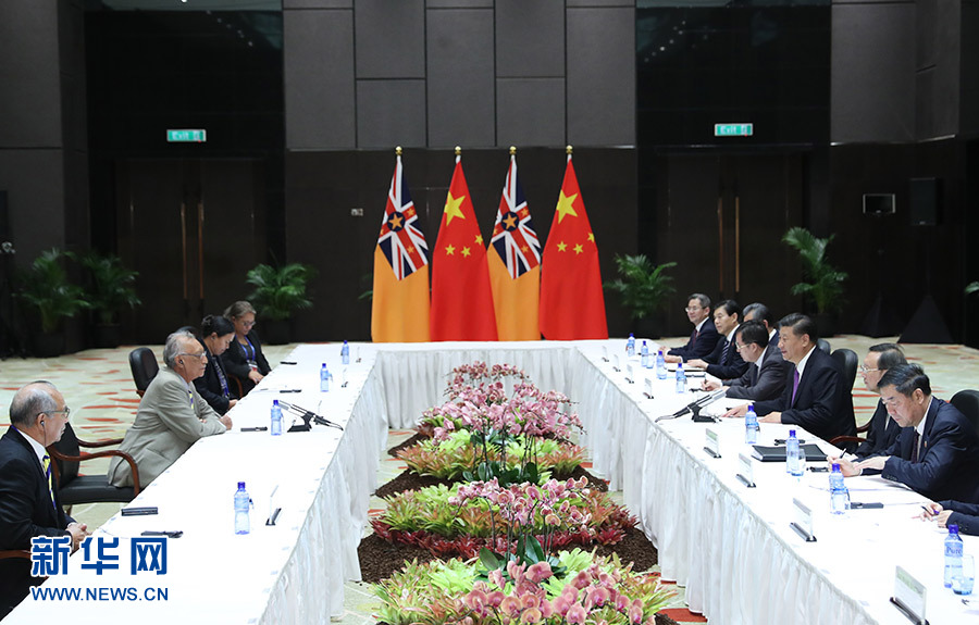 11月16日,國(guó)家主席習(xí)近平在莫爾茲比港分別會(huì)見(jiàn)建交太平洋島國(guó)領(lǐng)導(dǎo)人。這是習(xí)近平會(huì)見(jiàn)紐埃總理塔拉吉。 新華社記者 丁林 攝