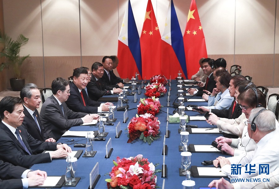 11月21日,國家主席習近平在馬尼拉會見菲律賓眾議長阿羅約和參議長索托?!⌒氯A社記者 龐興雷 攝