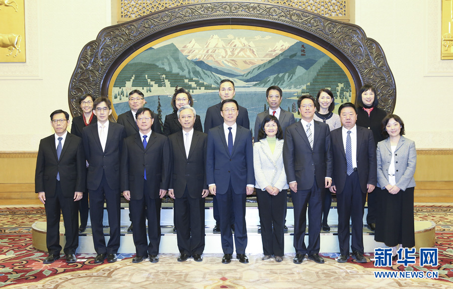 11月21日,中共中央政治局常委、國務院副總理韓正在北京人民大會堂會見香港特別行政區(qū)公務員事務局局長羅智光率領的特區(qū)政府常任秘書長和部門首長內地研修訪問團全體成員。 新華社記者姚大偉攝