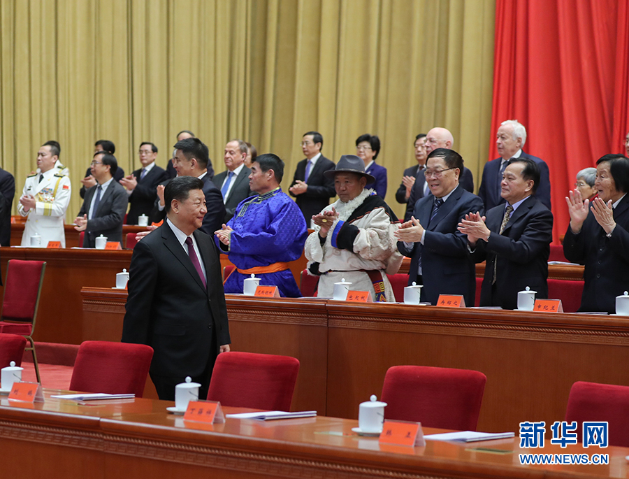 當(dāng)習(xí)近平等領(lǐng)導(dǎo)同志進(jìn)入會場,全場起立,熱烈鼓掌。