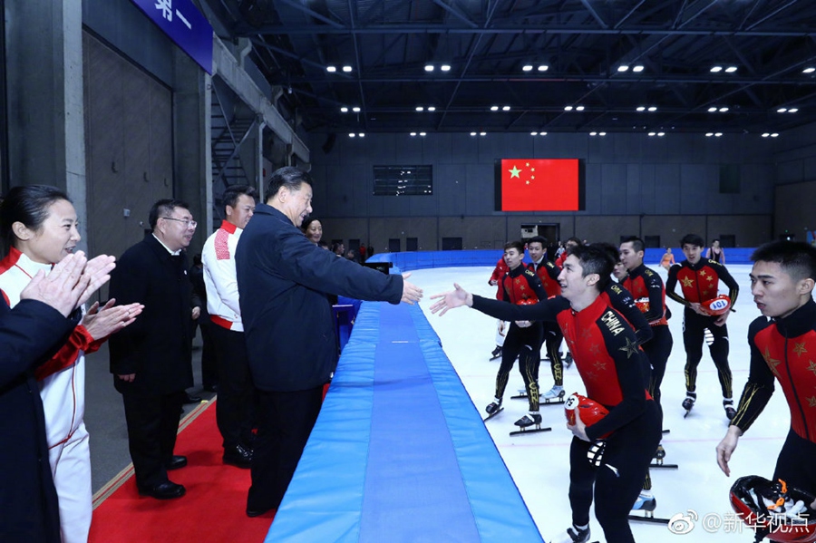 在位于北京石景山首鋼園區(qū)的國(guó)家冬季運(yùn)動(dòng)訓(xùn)練中心,習(xí)近平先后走進(jìn)速滑館和冰壺館,看望慰問(wèn)備戰(zhàn)的運(yùn)動(dòng)員、教練員?!坝?xùn)練強(qiáng)度大不大?”“從事這項(xiàng)運(yùn)動(dòng)多長(zhǎng)時(shí)間啦?”“生活上有哪些困難?”“國(guó)際上哪些競(jìng)爭(zhēng)對(duì)手最強(qiáng)?”總書記問(wèn)得仔細(xì)。得知運(yùn)動(dòng)員們充滿信心,總書記十分欣慰。他勉勵(lì)大家說(shuō),舉辦北京冬奧會(huì)、冬殘奧會(huì),中國(guó)冰雪運(yùn)動(dòng)將會(huì)上一個(gè)大臺(tái)階。這是百年不遇的歷史機(jī)遇,會(huì)應(yīng)運(yùn)而生一批高水平優(yōu)秀運(yùn)動(dòng)員。習(xí)近平強(qiáng)調(diào),體育強(qiáng)則國(guó)家強(qiáng),國(guó)家強(qiáng)則體育強(qiáng)。通過(guò)北京冬奧會(huì)把我國(guó)冬季冰雪運(yùn)動(dòng)發(fā)展起來(lái),這就是我們的希望。(記者張曉松、鞠鵬、謝環(huán)馳、劉彬)?