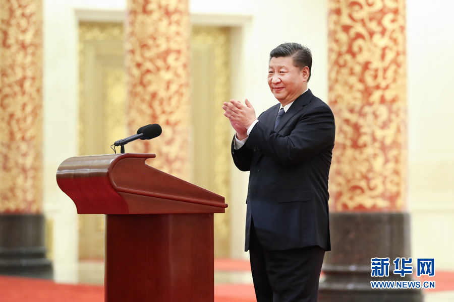 2月20日,黨和國家領(lǐng)導(dǎo)人習(xí)近平、李克強、栗戰(zhàn)書、汪洋、王滬寧、趙樂際、韓正等在北京人民大會堂會見探月工程嫦娥四號任務(wù)參研參試人員代表。這是習(xí)近平發(fā)表重要講話。 新華社記者鞠鵬攝