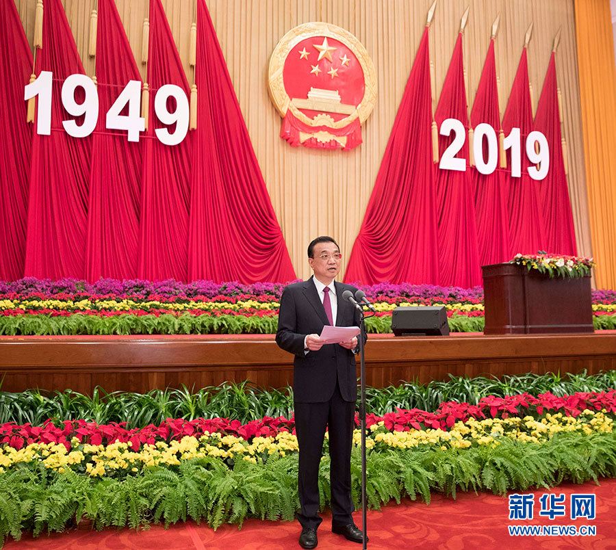 李克強主持 栗戰(zhàn)書汪洋王滬寧趙樂際韓正王岐山出席 ---慶祝中華人民共和國成立70周年招待會30日晚在人民大會堂隆重舉行。" />