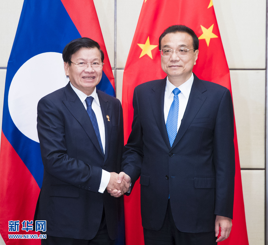 11月3日,國務(wù)院總理李克強在曼谷會見老撾總理通倫。 新華社記者黃敬文攝