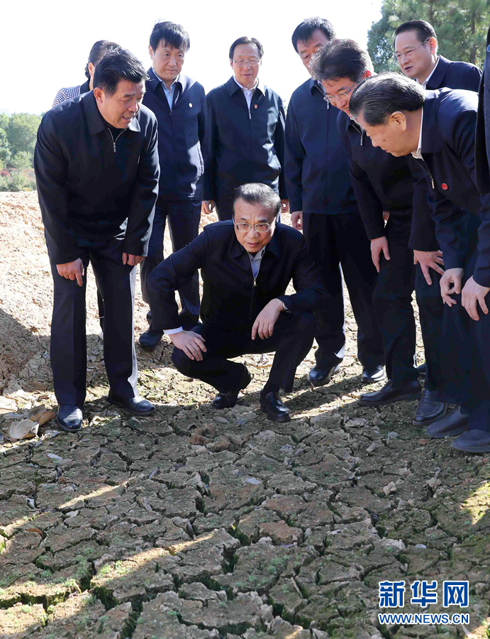 11月14日至15日,中共中央政治局常委、國(guó)務(wù)院總理李克強(qiáng)在江西景德鎮(zhèn)、南昌考察。這是11月14日,李克強(qiáng)在景德鎮(zhèn)山田水庫(kù)了解旱情。 新華社記者 劉衛(wèi)兵 攝