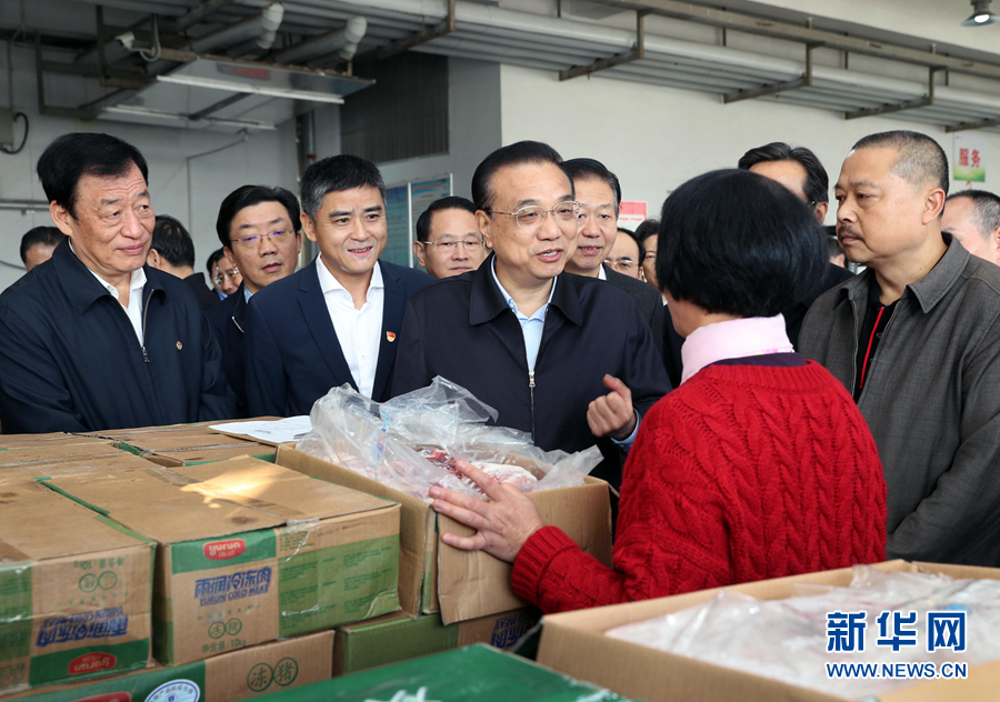 11月14日至15日,中共中央政治局常委、國(guó)務(wù)院總理李克強(qiáng)在江西景德鎮(zhèn)、南昌考察。這是11月15日,李克強(qiáng)在南昌最大的農(nóng)產(chǎn)品批發(fā)市場(chǎng),詳細(xì)詢問(wèn)豬肉價(jià)格變化和走勢(shì)。 新華社記者 劉衛(wèi)兵 攝