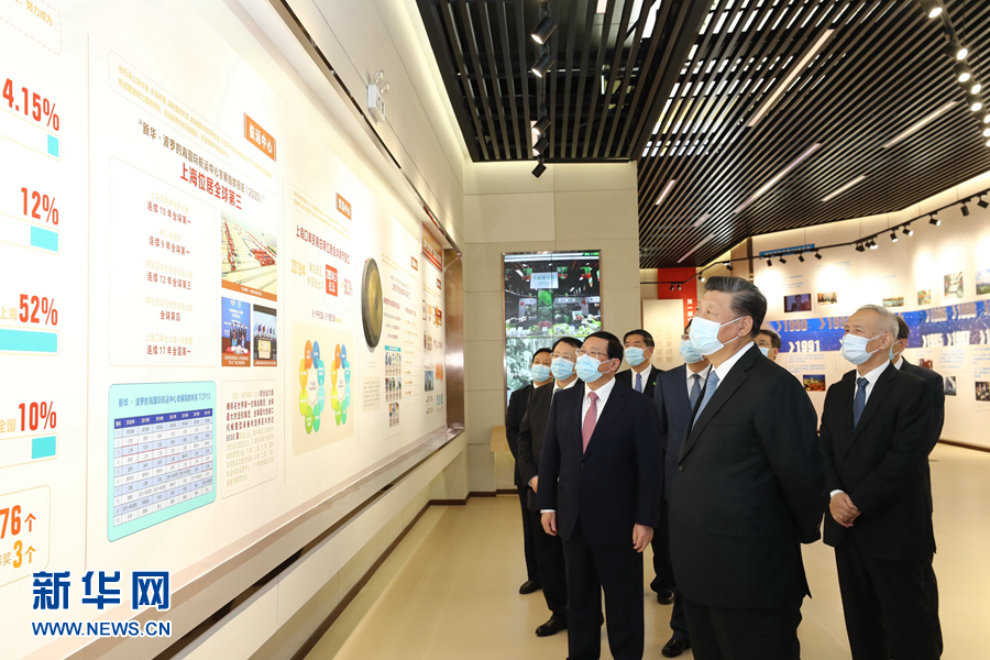 11月12日,浦東開發(fā)開放30周年慶祝大會(huì)在上海市舉行。中共中央總書記、國家主席、中央軍委主席習(xí)近平在會(huì)上發(fā)表重要講話。這是當(dāng)天上午,習(xí)近平等參觀“在國家戰(zhàn)略的引領(lǐng)下——浦東開發(fā)開放30周年主題展”?!⌒氯A社記者 殷博古 攝