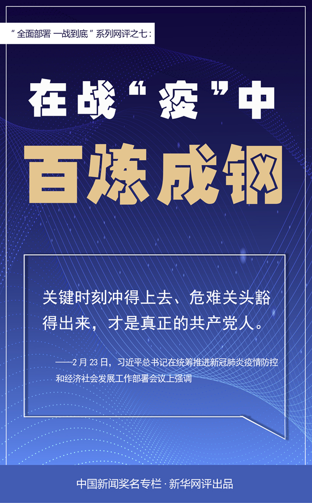 大事難事看擔(dān)當(dāng)。各級黨組織要在斗爭一線考察識別干部,樹立正確用人導(dǎo)向,更好激勵(lì)廣大黨員、干部奮勇爭先,在戰(zhàn)“疫”中百煉成鋼,在不懈奮斗中高高舉起鮮紅的黨旗。(文字:馬若虎 海報(bào)制作:張倩)