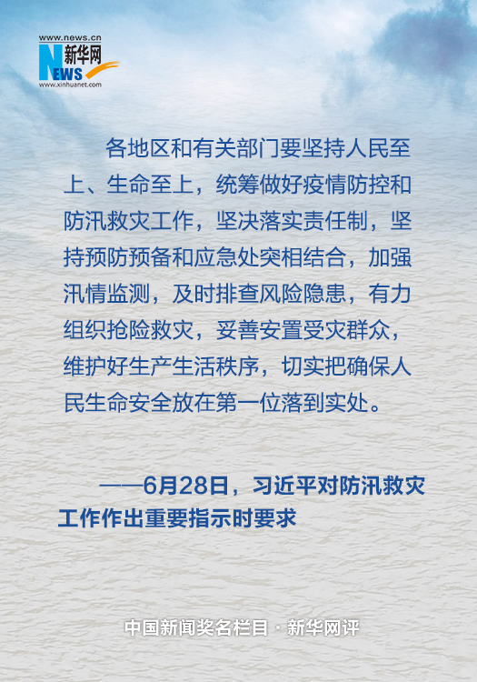 要堅持人民至上、生命至上。人民高于一切,生命重于泰山。無論防控疫情,還是抗洪搶險,都要切實把確保人民生命安全放在第一位落到實處。在做好疫情防控的同時,一定要有力組織搶險救災(zāi),強化應(yīng)急搶險人員轉(zhuǎn)移安置,落實基層轉(zhuǎn)移避險的責(zé)任,細(xì)化避險轉(zhuǎn)移預(yù)案,在需要的時候果斷轉(zhuǎn)移有危險的群眾,妥善安置受災(zāi)群眾,千方百計減少人員傷亡。