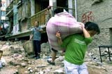 武警戰(zhàn)士為舟曲村莊群眾運(yùn)送物資