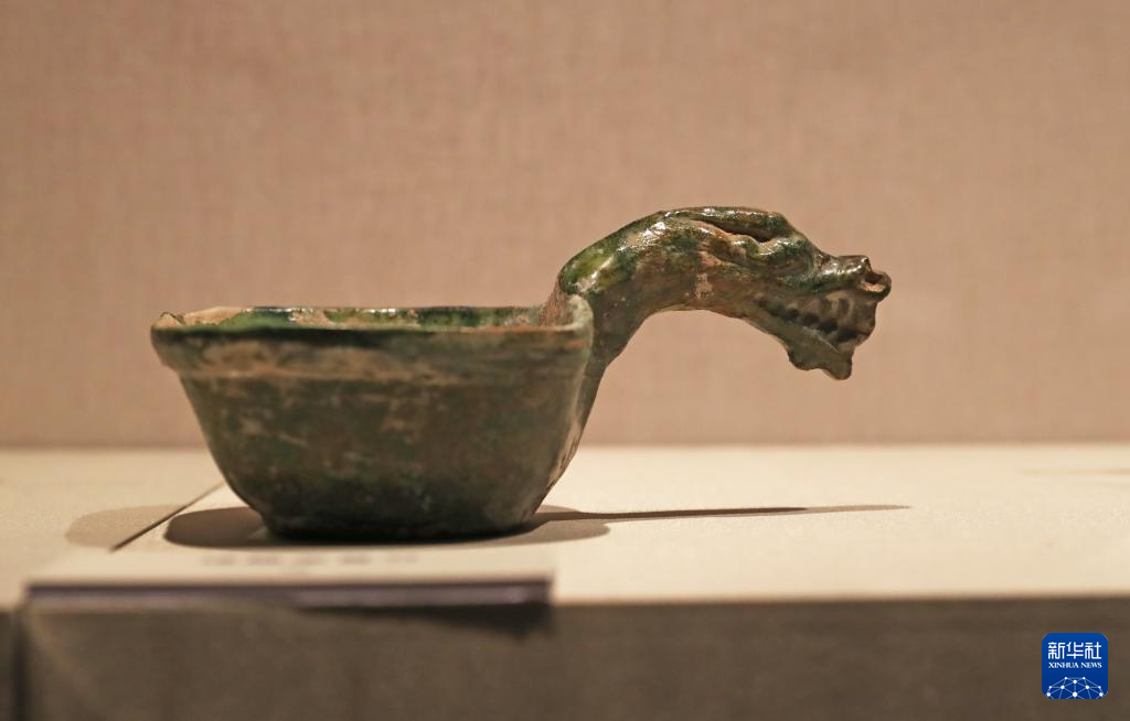 2月2日在辽宁省博物馆拍摄的绿釉龙首勺。