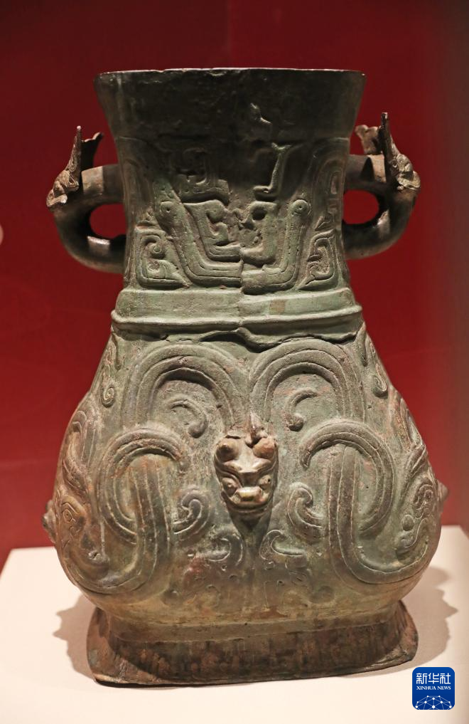 2月2日在辽宁省博物馆拍摄的龙纹方壶。