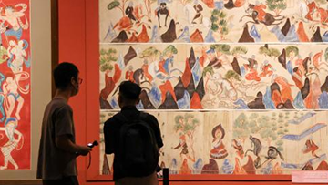 7月17日,解放军文工团雕塑创作员郎钺在擦拭雕塑。