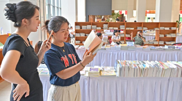 8月18日,来自广州的游客在泉州市蟳埔村出租“簪花围”的服饰店里参观。