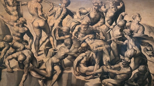 为纪念意大利文艺复兴大师米开朗琪罗(1475-1564)诞辰550周年,位于荷兰哈勒姆市的泰勒斯博物馆13日举行米开朗琪罗珍稀作品展媒体预展。