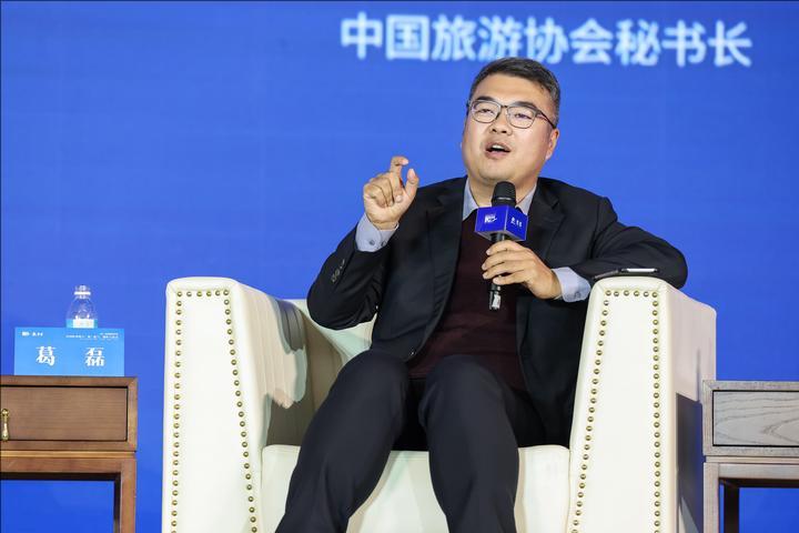 中国旅游协会秘书长葛磊在“思客对话”环节发表观点。新华网 发