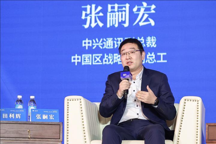 中兴通讯副总裁、中国区战略规划总工张嗣宏在“思客对话”环节发表观点。新华网 发