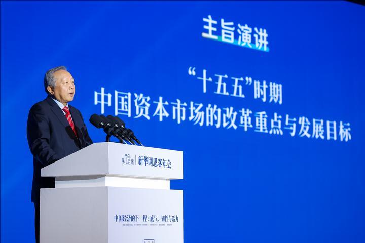 中国人民大学国家金融研究院院长、中国资本市场研究院院长吴晓求发表主旨演讲。新华网 发