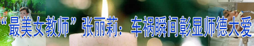 車禍瞬間挽救學(xué)生導(dǎo)致高位截癱的黑龍江?。玻箽q女教師張麗莉,被網(wǎng)友稱贊為“最美女教師”。連日來(lái),張麗莉的感人事跡激發(fā)起社會(huì)各界的愛心傳遞,舍己為人、挺身向前的奉獻(xiàn)精神正成為中國(guó)年輕一代道德價(jià)值體系中的火炬和航標(biāo)。 張麗莉,女,1983年生,大學(xué)本科,黑龍江省佳木斯市第十九中學(xué)的語(yǔ)文教師。2006年,她從大慶師范學(xué)院文學(xué)院03級(jí)本科班畢業(yè)后,分配到佳木斯市第十九中學(xué)任教。她在2012年5月8日的交通事故中,為救學(xué)生而受重傷,致使雙腿截肢。2012年5月15日、5月16日,張麗莉獲“全國(guó)五一勞動(dòng)獎(jiǎng)?wù)隆?、全?guó)三八紅旗手等榮譽(yù)稱號(hào)。