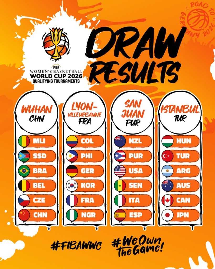 2026年女篮世界杯将于明年9月4日至13日在德国柏林举行。德国队以及各大洲冠军澳大利亚队、比利时队、尼日利亚队和美国队已提前锁定参赛席位,预选赛四个赛区将产生剩余11个参赛名额。
