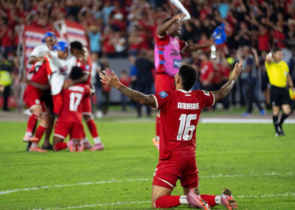 11月18日,巴拿马队球员安德烈斯·安德拉德(前)庆祝比赛胜利。新华社记者 许咏政 摄