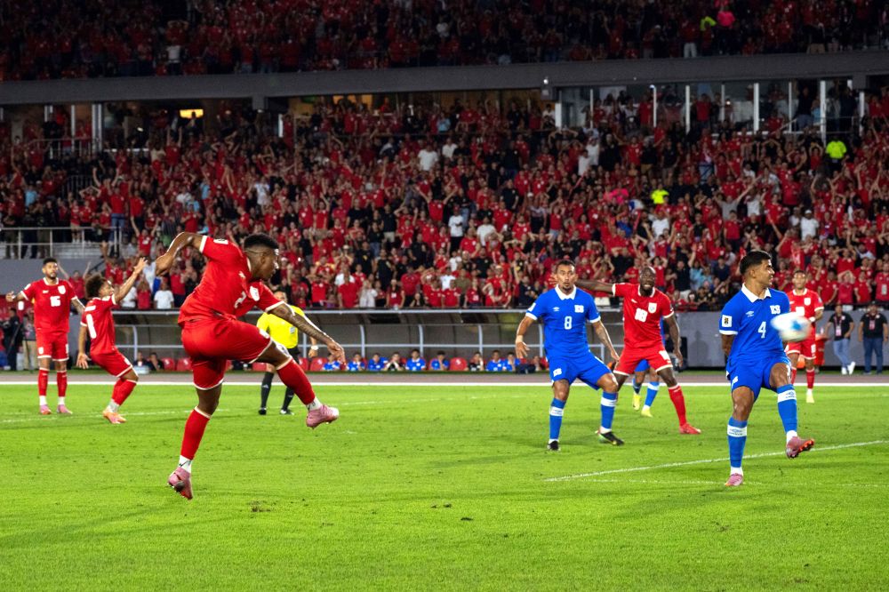 2018年第一次参加世界杯正赛后,巴拿马队近年来的世界排名节节攀升,赛前已升至第31位。本场比赛开场后,面对实力弱于自己的萨尔瓦多队,巴拿马队牢牢占据优势,发起一波波猛攻,在第17分钟由塞萨尔·布莱克曼小角度补射首开记录,球迷们欢呼雀跃、迫不及待再度燃起冷焰火。上半场补时阶段,埃里克·戴维斯打进点球,为主队扩大领先优势。