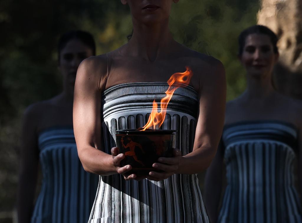 ↑11月24日,演员在圣火火种采集仪式彩排中表演。新华社记者 吕优 摄