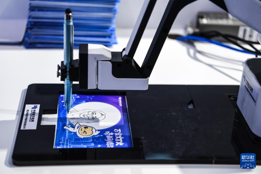 8月28日,南方电网在数博会上展出的一款AI智能画像机器人在作画。