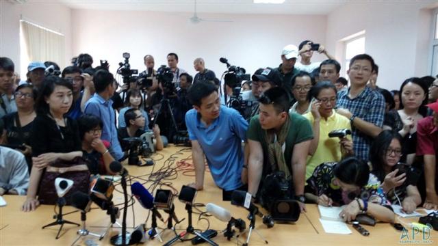 圖為設(shè)在富國島的越南搜救前線指揮辦公室,各國記者在等待新聞發(fā)布會(huì)的召開。