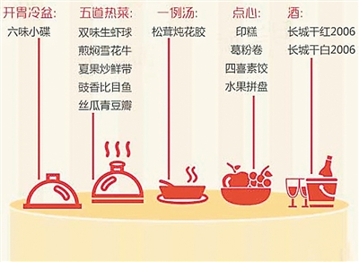 歡迎晚宴上共出現(xiàn)一個(gè)冷盤、五道熱菜,此外還有點(diǎn)心、水果、甜品等。蘇德興介紹,其中冷盤的食材基本都是上海本地原產(chǎn),烹飪用油來自婺源高山上自然生長(zhǎng)的山茶,口味則凸顯江南的地方特色。上海市食品藥品監(jiān)督管理局更進(jìn)一步透露,國宴的原材料“沒有特供,全是從超市買的”。