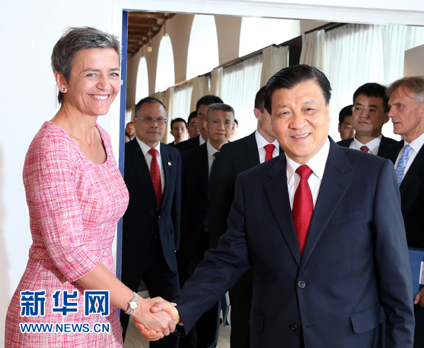 ??? 6月11日,正在丹麥進行正式訪問的中共中央政治局常委、中央書記處書記劉云山在哥本哈根會見丹麥經(jīng)濟內政大臣瑪格麗特·韋斯塔格。新華社記者姚大偉攝