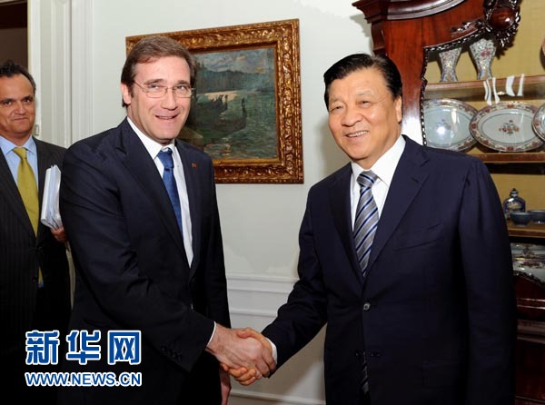 ??? 6月17日至19日,應(yīng)葡萄牙政府邀請,中共中央政治局常委、中央書記處書記劉云山對葡萄牙進(jìn)行正式訪問。這是6月18日,劉云山在里斯本會見葡萄牙總理科埃略。 新華社記者 饒愛民 攝