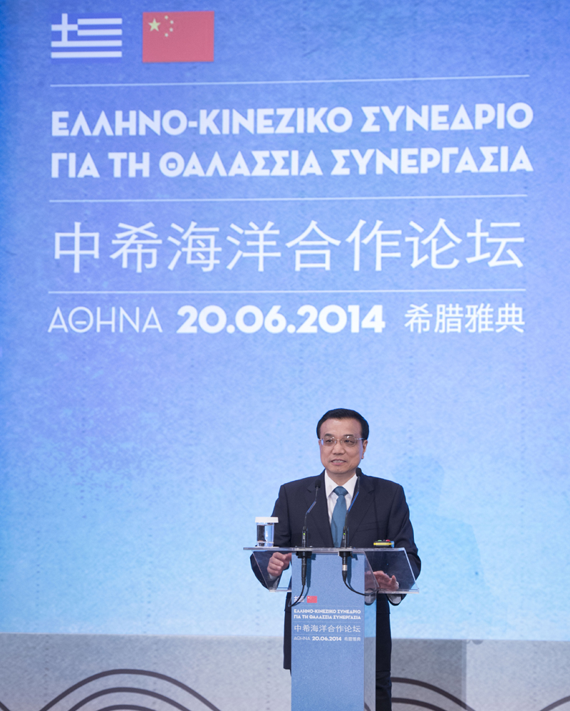 ??? 李克強總理20日在中希海洋合作論壇上說,海洋承載著世界經(jīng)濟發(fā)展與合作共贏的希望。連接各大洲的眾多航線構成全球經(jīng)濟一體化大通道,承載著國際貿(mào)易最活躍部分。中國愿同海洋國家一道,積極構建海洋合作伙伴關系,共同建設海上通道、發(fā)展海洋經(jīng)濟。