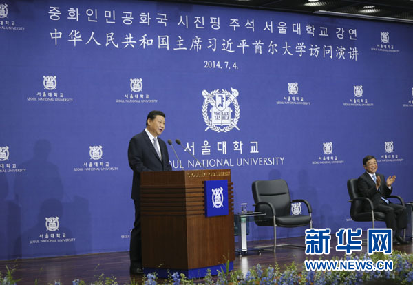 ????7月4日,國家主席習近平在韓國國立首爾大學發(fā)表題為《共創(chuàng)中韓合作未來 同襄亞洲振興繁榮》的重要演講。 新華社記者 蘭紅光 攝