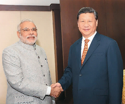 習(xí)近平強(qiáng)調(diào),中印雙方要加強(qiáng)交往,我期待著在不久的將來(lái)訪(fǎng)問(wèn)印度,歡迎莫迪總理早日訪(fǎng)華。雙方要對(duì)接各自發(fā)展戰(zhàn)略,建立更加緊密的發(fā)展伙伴關(guān)系,擴(kuò)大文化、教育、宗教、青年等領(lǐng)域友好交流,在鐵路等基礎(chǔ)設(shè)施建設(shè)、產(chǎn)業(yè)投資等領(lǐng)域打造一批示范性項(xiàng)目,擴(kuò)大服務(wù)貿(mào)易、投資、旅游等領(lǐng)域合作,逐步實(shí)現(xiàn)雙邊貿(mào)易總體平衡和可持續(xù)發(fā)展,推進(jìn)孟中印緬經(jīng)濟(jì)走廊建設(shè),引領(lǐng)區(qū)域經(jīng)濟(jì)一體化進(jìn)程。中印要加強(qiáng)多邊領(lǐng)域合作,共同參與國(guó)際規(guī)則制定,增強(qiáng)發(fā)展中國(guó)家的話(huà)語(yǔ)權(quán)。中方歡迎印方作為創(chuàng)始成員加入亞洲基礎(chǔ)設(shè)施投資銀行。雙方要以積極和向前看的態(tài)度管控和處理分歧,通過(guò)友好協(xié)商,盡早找到公平合理、雙方都能接受的邊界問(wèn)題解決辦法。在最終解決前,共同維護(hù)好邊境地區(qū)和平安寧。