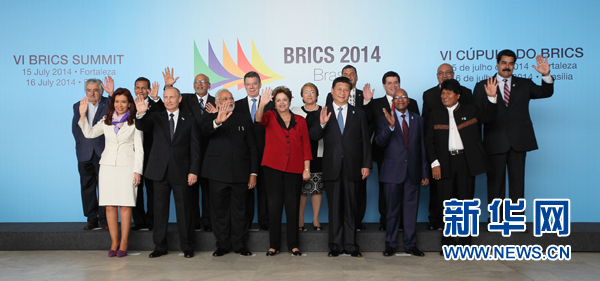 ????新華網巴西利亞7月16日電(記者陳威華、錢彤)7月16日,金磚國家同南美國家領導人對話會在巴西利亞舉行。中國國家主席習近平、巴西總統(tǒng)羅塞夫、俄羅斯總統(tǒng)普京、印度總理莫迪、南非總統(tǒng)祖馬以及蘇里南總統(tǒng)鮑特塞、阿根廷總統(tǒng)克里斯蒂娜、玻利維亞總統(tǒng)莫拉萊斯、哥倫比亞總統(tǒng)桑托斯、智利總統(tǒng)巴切萊特、厄瓜多爾總統(tǒng)科雷亞、圭亞那總統(tǒng)拉莫塔爾、巴拉圭總統(tǒng)卡特斯、秘魯總統(tǒng)烏馬拉、烏拉圭總統(tǒng)穆希卡、委內瑞拉總統(tǒng)馬杜羅等南美國家領導人共同出席。