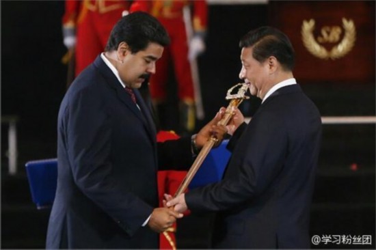 ????2014年7月20日,馬杜羅向習(xí)近平授予象征自由、主權(quán)、獨立的玻利瓦爾劍