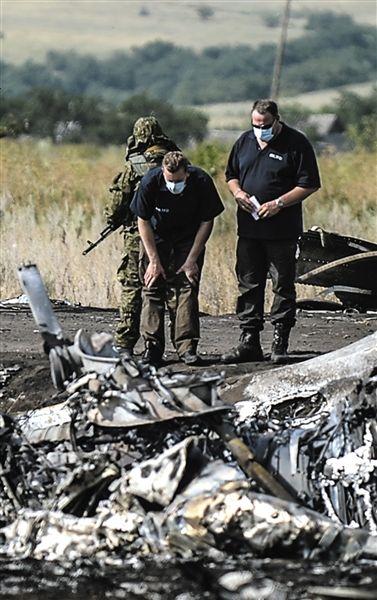 25日,烏克蘭頓涅茨克,調(diào)查人員在馬航墜機(jī)現(xiàn)場(chǎng)。
