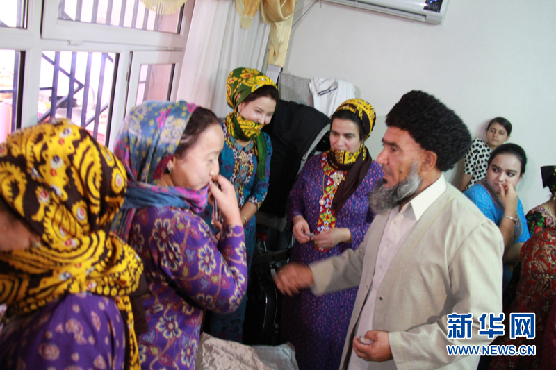 嘴捂頭巾的土庫(kù)曼斯坦婦女? 記者 盧敬利攝