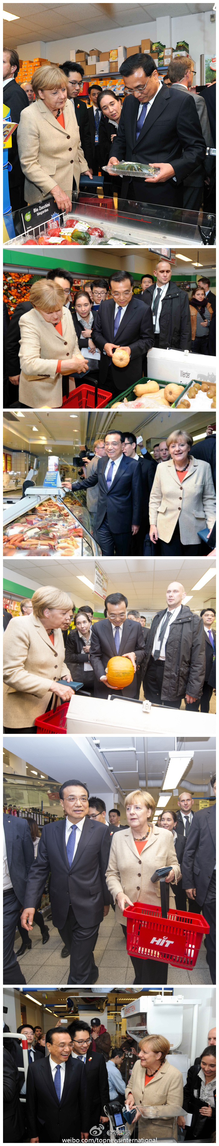????新華網(wǎng)北京10月11日電 據(jù)新華社“新國際”微博報道,10日下午,中德總理結(jié)束政府磋商后,李克強、默克爾臨時光顧了柏林一家超市。默克爾饒有興致地向李克強介紹超市里的產(chǎn)品,還向他推薦了一款可以寄給家人的明信片,并作為禮物送給李克強。兩位總理的到來吸引了眾多顧客駐足,紛紛上前與中德總理握手問候。