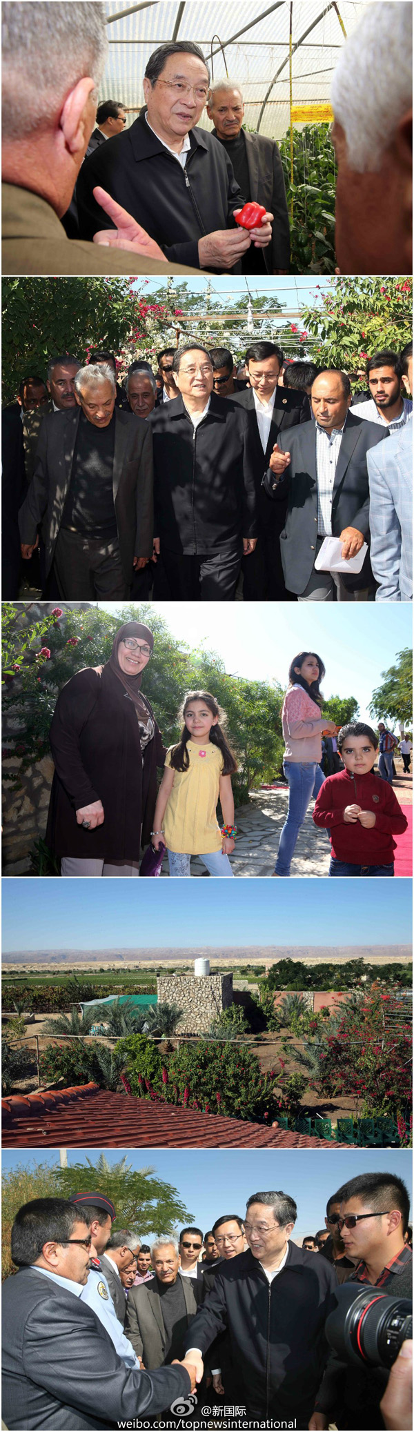 ????新華網(wǎng)北京11月8日電 據(jù)新華社“新國際”微博報道,全國政協(xié)主席俞正聲8日驅車100多公里,前往約旦河谷南段的碩果農業(yè)合作社參觀。他走進農家和田間大棚,詳細了解蔬菜產銷情況,與約旦農民共話友誼。俞正聲說:“約旦人民是我們的好朋友。朋友過得好,我們表示祝賀,希望你們家園更美麗?!?