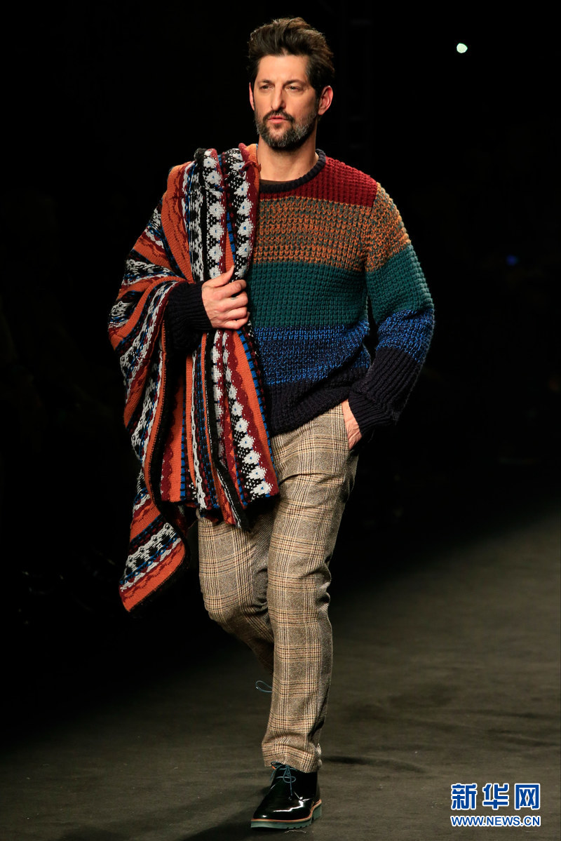 ????西班牙本土品牌Desigual3日在第15屆“080巴塞羅那時裝展”(080 Barcelona Fashion)上推出了自己的新款男裝。一水兒的型男帥哥走在T臺上,也是一道別樣的風(fēng)景。(保·巴雷納 攝)