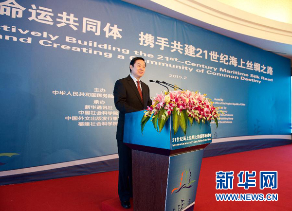 新華網(wǎng)福州2月12日電 2月12日,中共中央政治局委員、中央書記處書記、中宣部部長(zhǎng)劉奇葆出席在福建泉州召開的21世紀(jì)海上絲綢之路國(guó)際研討會(huì),發(fā)表《揚(yáng)帆海上絲路 實(shí)現(xiàn)共贏發(fā)展》的主旨演講。