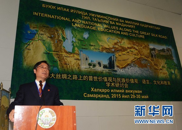姜鋒還說,上海作為中國發(fā)展最前沿城市之一,非常重視高校交流與發(fā)展。上海外國語大學(xué)重視與烏茲別克斯坦高校學(xué)術(shù)交流合作。今年起上海外國語大學(xué)將開設(shè)烏茲別克語,并與撒馬爾罕國立外國語學(xué)院共同推動(dòng)撒馬爾罕孔子學(xué)院成為中烏教育合作、文化交流的橋梁。姜鋒強(qiáng)調(diào),支持雙方科研部門就學(xué)術(shù)交流、人員互訪、合作開展科學(xué)研究等項(xiàng)目進(jìn)行合作。姜鋒表示,撒馬爾罕國立外國語學(xué)院和上海外國語大學(xué)合作創(chuàng)辦的孔子學(xué)院“撒馬爾罕孔子學(xué)院”對(duì)推動(dòng)中烏戰(zhàn)略伙伴關(guān)系發(fā)展,加強(qiáng)共建絲綢之路經(jīng)濟(jì)帶框架下中烏之間的教育合作和人文交流,將會(huì)作出自己獨(dú)特的貢獻(xiàn)。