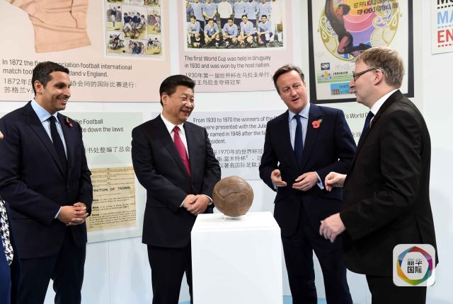 新華網北京10月24日電 昨天,一張習近平主席與曼城球星阿奎羅和英國首相卡梅倫的手機自拍照紅遍了全球。習主席在訪英第二站參觀了曼徹斯特城足球俱樂部,希望中英雙方加強包括足球在內的體育交流與合作。