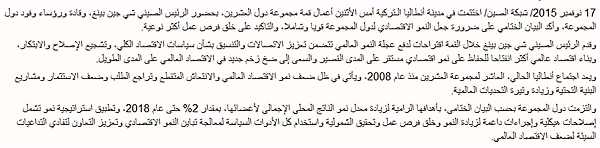 昨日,二十國集團(tuán)領(lǐng)導(dǎo)人第十次峰會在土耳其安塔利亞閉幕。中國領(lǐng)導(dǎo)人習(xí)近平期間出席了峰會,并發(fā)表題為《創(chuàng)新增長路徑 共享發(fā)展成果》的重要講話,其中強調(diào)二十國集團(tuán)要加強宏觀經(jīng)濟(jì)政策溝通和協(xié)調(diào),推動改革創(chuàng)新,構(gòu)建開放型世界經(jīng)濟(jì)。