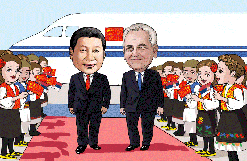 6月17日,國家主席習(xí)近平抵達貝爾格萊德開始對塞爾維亞進行國事訪問。戰(zhàn)機護航、塞爾維亞總統(tǒng)尼科利奇夫婦、議長戈伊科維奇和總理武契奇等親自到機場迎接,體現(xiàn)了東道主對習(xí)主席來訪的高規(guī)格接待。習(xí)主席和夫人彭麗媛的第一場活動就是前往中國駐南聯(lián)盟被炸使館舊址,憑吊在使館被炸事件中英勇犧牲的3位烈士。接下來,習(xí)近平主席同尼科利奇總統(tǒng)共同出席中國文化中心奠基儀式。