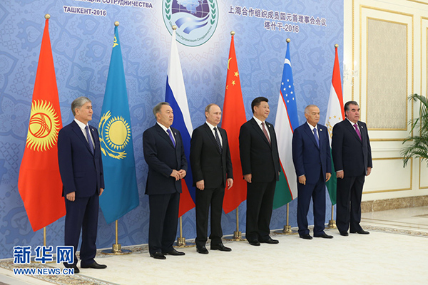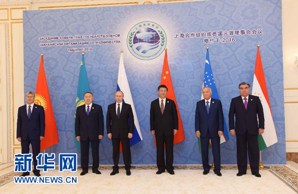 新華社塔什干6月24日電(記者陳贄 霍小光 駱珺)24日,上海合作組織成員國元首理事會第十六次會議在烏茲別克斯坦塔什干舉行。國家主席習近平同哈薩克斯坦總統(tǒng)納扎爾巴耶夫、吉爾吉斯斯坦總統(tǒng)阿坦巴耶夫、俄羅斯總統(tǒng)普京、塔吉克斯坦總統(tǒng)拉赫蒙、烏茲別克斯坦總統(tǒng)卡里莫夫出席會議。習近平在會上發(fā)表重要講話,強調(diào)要堅定遵循上海合作組織根本宗旨和原則,牢牢把握發(fā)展大方向,動態(tài)調(diào)整各領域合作方略,確保本組織生機活力。