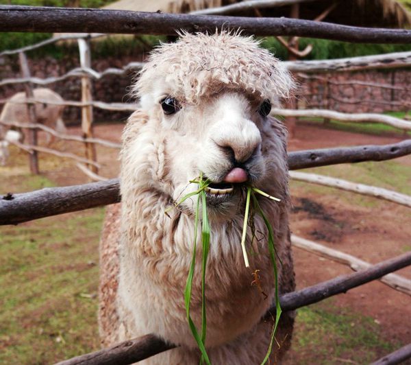 ????羊駝模樣乖巧,大眼睛、長脖子。有的渾身細茸,也有的長毛垂地。神態(tài)慵懶似駱駝卻無駝峰;性情溫順又似好脾氣的小綿羊,是人見人愛的山地寵物。